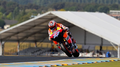 En MotoGP Stoner ha conseguido la victoria en un circuito en el que ha dominado durante todo el fin de semana, en todas las sesiones. Andrea Dovizioso ha sido segundo y la sorpresa la ha dado Valentino Rossi, que ha finalizado en la tercera posición después de ver como Jorge Lorenzo se colaba en una curva y se quedaba sin opciones de luchar por el podio. Marco Simoncelli ha vuelto a hacer de las suyas y ha provocado que Dani Pedrosa se fuera al suelo. Después de haber sido adelantado, Simoncelli se ha abierot en la curva y ha chocado con Dani Pedrosa que ha sufrido una lesión en la clavícula derecha. La clasificación general la sigue encabezando Jorge Lorenzo, seguido por Casey Stoner y Dani Pedrosa.