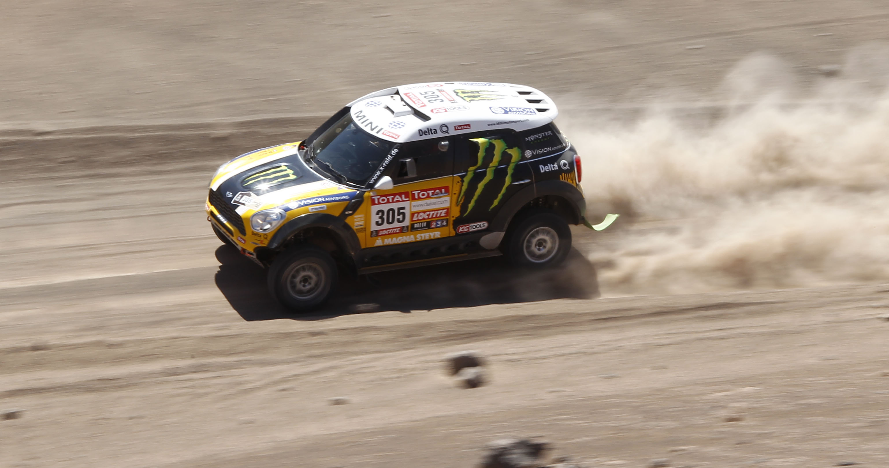 Roma por su parte ha tenido mucha más suerte o por lo menos su MINI se ha mostrado más fiable y ha estado siguiendo bien de cerca a los pilotos de cabeza. Empezaba pasando en cuarta posición por el WP1 pero luego ascendía hasta la tercera (WP’s 2 y 3) y poco más tarde se ponía segundo. A medida que ha ido avanzando el día Roma ha mostrado que su ritmo era lo suficientemente bueno como para aguantar los tiempos del líder de la general y ahí ha estado hasta el final de la etapa, codeándose con los pilotos de arriba como está haciendo desde el inicio del Dakar.