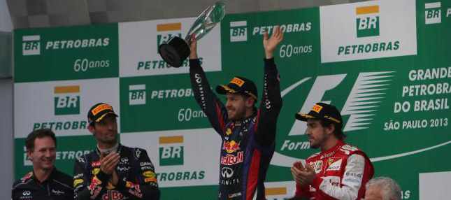 El Gran Premio de Brasil de 2013 ha sido una prueba especial por varios motivos, pero básicamente porque ha sido el último con motores V8 en la Fórmula 1, y Sebastian Vettel se ha querido despedir por todo lo alto, dejando bien claro quién ha sido y quién es el gran dominador de este deporte en los últimos años. El piloto de Red Bull no ha perdonado ni siquiera al que ha sido su compañero en las últimas temporadas, Mark Webber, que se despedía de Red Bull y de la Fórmula 1.